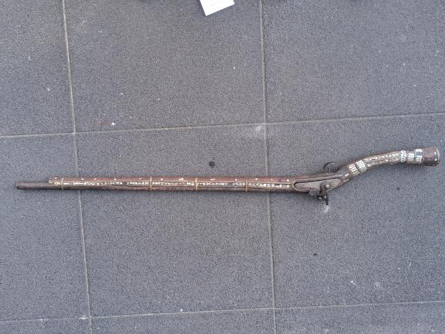 Turks Arabisch vuursteen geweer met koper en ivoor? Inleg Lengte 130 cm