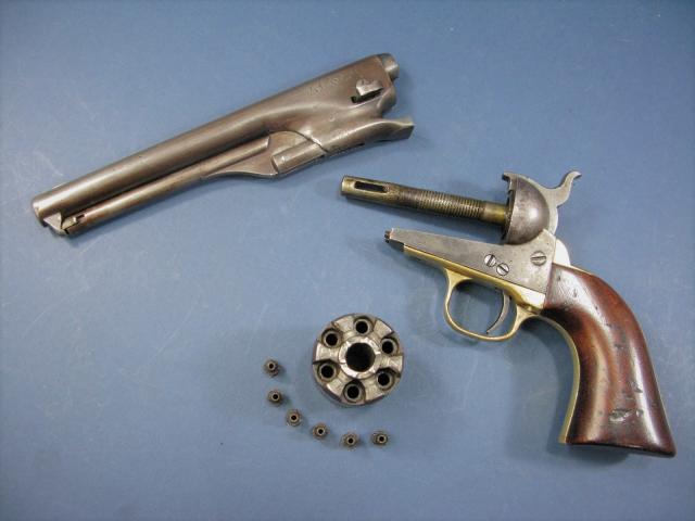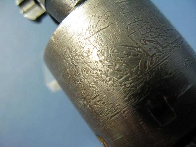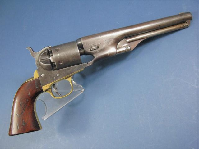 Colt 1861 Navy model 6 schots percussie revolver cal .36 in zeer goede staat. Mechanisch zeer goed werkend, goede veren en goede indexatie. Nette 7,5 inch loop met duidelijke trekken en velden. Newyork loop adres. Nummergelijk op alle onderdelen inclusief wig. Gegraveerde cilinder scene duidelijk zichtbaar.
