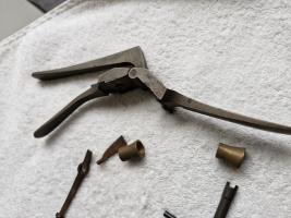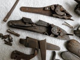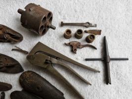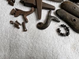 Diverse onderdelen en gereedschap voor de restauratie van antieke pistolen