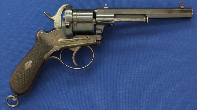 Een hele mooie Lefaucheux Patent 6 schots 12mm pinvuur revolver gemaakt door Francotte Luik voor Ed. de Beaumont Maastricht. Nog zeer veel originele finish.