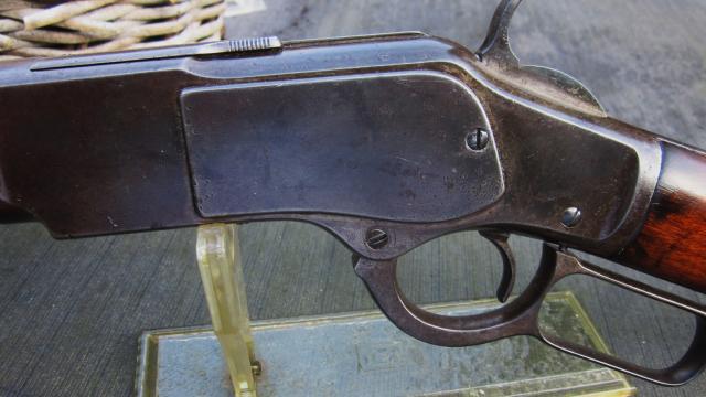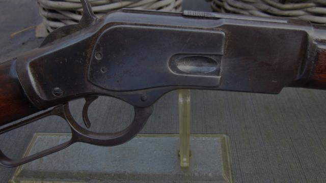 Betreft een mooie orginele Winchester 1873 musket cal 44 /40 met nog zeer mooie patina ,mooie kolf en zeer mooie loop met mooie trekken en velden