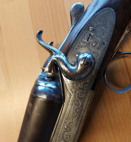 Het geweer is in een mooie, gebruikte staat. Hij spant en sluit goed. De lopen zijn, zowel in- als uitwendig, vrij glad met minieme putting. Het geweer heeft een prachtige kolf en is gemaakt door de Britse geweermaker W.Richards uit Liverpool. De verkoopprijs is inclusief aangetekende verzending.
