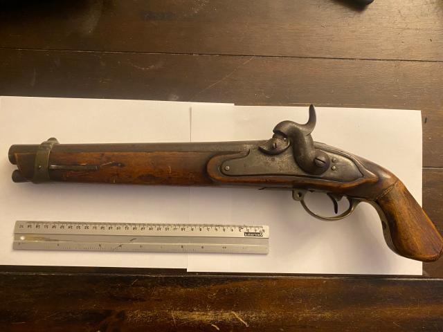 Een antieke Prussische Neisse arsenal model 1809 percurssie model 1809 conversie model vervaardig als vuursteen en waarschinlijk omgebouwd en ingkort voor gebruik in Amerikaanse burgeroorlog