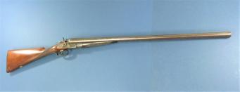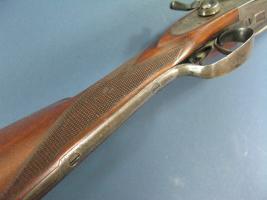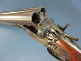 Mooi Engels jachtgeweer met toplever sluiting cal 12 in zeer goede staat in een kunstleren koffer. Spiegel gladde lopen met Engelse Birmingham proefbankstempels. loop adres Walter Locke & Co Calcutta. Op de bascule en de gegraveerde slotplaten, welke zijn gesigneerd met "Walter Locke & Co", is nog bondharding zichtbaar. Geen speling op de bascule. Checkered notenhouden kolf in zeer goede staat met een reparatie aan de kolfkap.