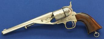 Een hele mooie vernikkelde Single Action Colt model 1861 Navy Richards-Mason Conversion in kaliber 38 randvuur. Slechts 1500 van gemaakt.