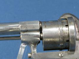 Zeer degelijk Frans 7 mm 6 schots penvuurrevolver in uitstekende staat. Gemerkt op de loop Fabrique St Etienneen voorzien van een Frans St Etienne keurmerk op cilinder. Op loop gemerkt met Movement Acier. Perfect en opvallend strak werkend werkend mechanisme in zowel sa als da. Ebbenhouten greepjes.