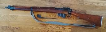Lee Enfield, oud hollands onklaar gemaakt. Geen bewegende delen, loop dichtgelast. Met bajonet.