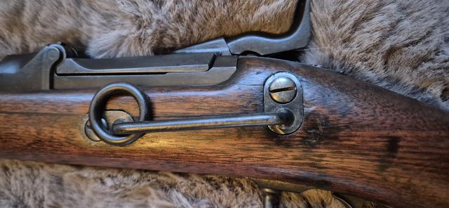 Springfield Trapdoor Cavalry karabijn. Betreft een originele 1873 model karabijn (geen ingekort geweer). De inscripties en stempels zijn diep en duidelijk zichtbaar. Het achterste richtmiddel heeft ook de correcte C inscriptie voor karabijn.