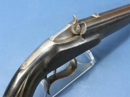 Achtkantige gladde loop met patroonuitwerper en goed werkend mechanisme. Licht gegraveerd metalen beslag. Geëboniseerde notenhouten renaissance kolf in mooie originele staat.
