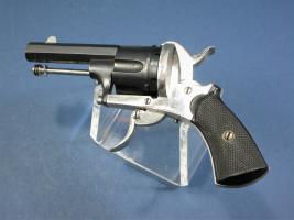 Mooi 7 mm 6 schots penvuur revolver in zeer goede staat. Gemerkt op de loop U met ster en op cilinder is het ELG keurmerk aanwezig. Geblauwde loop en fluted cilinder. Goed strak werkend mechanisme in zowel sa als da.