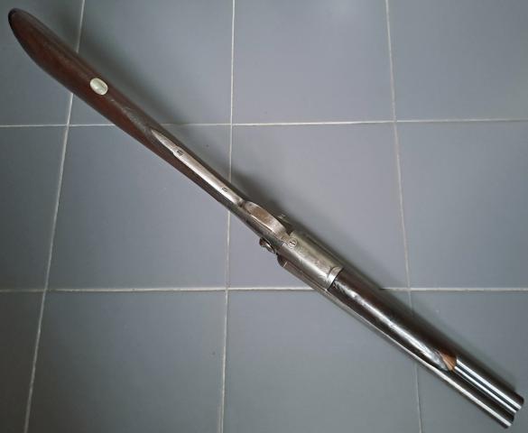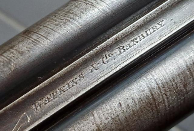 Het geweer is in nette, gebruikte staat. Hij spant en sluit netjes en inwendig zijn de lopen nog vrij glad met slechts wat lichte plekjes aan pitting (met name aan het einde van de kamers). Het geweer is gemaakt door de Britse geweermaker Watkins & Co. uit Banbury en is voorzien van Britse zwartkruit proefbankstempels.