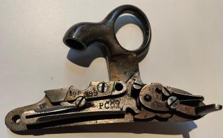 M1815 vuursteen pistool geconverteerd naar percussie. Metalen delen in goede staat. Overal mooi gestempeld. Mist loopband met korrel. Originele piston. Hout is helaas door houtwormen veranderd in gatenkaas waardoor de kolf gebroken is. Blijkbaar ooit rood geschilderd geweest. Heeft u een goede kolf met minder goed ijzerwerk is dit een mooie gelegenheid om e.e.a. te upgraden |