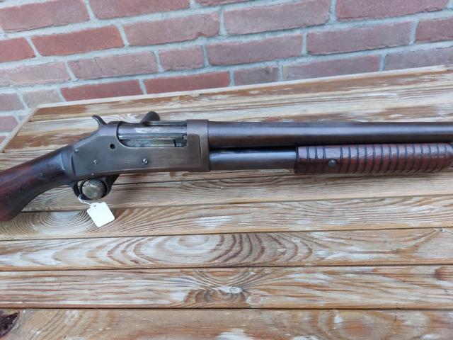 Nette 1893 pump action winchester kal 12 Een van de later gemaakte modellen Perfecte aktie, veiligheid werkt prima Geen deuken in de kast.. Serienummer zit in 29.000 reeks B