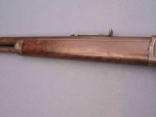 Winchester 1873 rifle in kaliber 44/40 in zeer goede originele staat. 24 inch ronde loop met duidelijk loopadres. Nette loop met zichtbare trekken en velden. Goede werkend mechanisme. Notenhouten kolf en voorhout zonder barsten of scheuren.