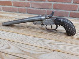 Een goed werkend 410 dubbelloops pistool Nette lopen, goede kamers Werkende uitwerpers Voorzien vam belgische zwart kruit proef markings Vaste prijs