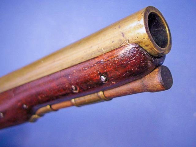 IJzeren riemhaak, messing monturen en houten laadstok.