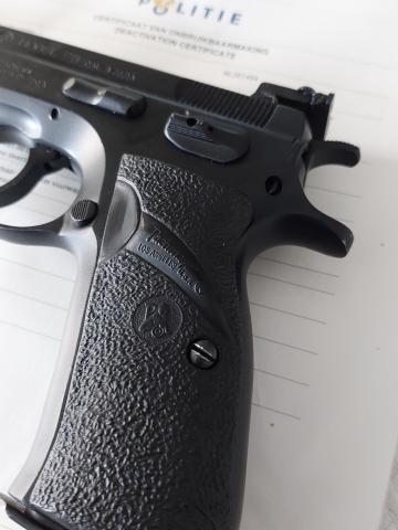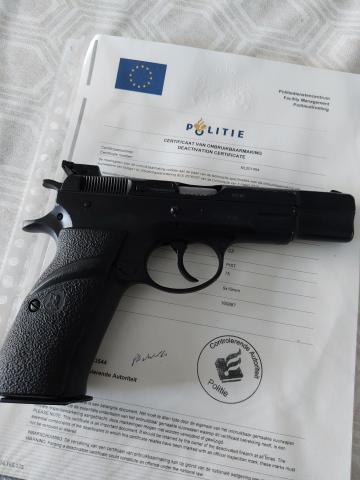 Gave CZ-75 kal. 9mm para (9x19) Met bewegende slede Komt met nederlands EU onklaar certificaat Geen vergunning nodig. Minimale leeftijd voor de koper Is 18 jaar of ouder