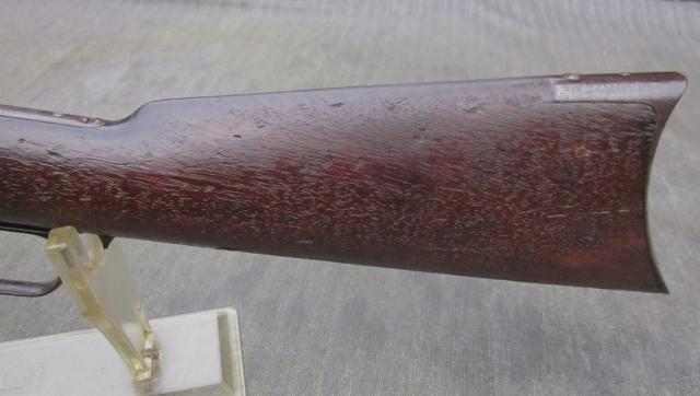 Betreft een leuke Winchester 1873 in caliber 44/ 40 met nog de mooie oude patina dus niet opnieuw geblauws,Loop s netjes voor de leeftijd en houtwerk ook.Bouwjaar is 1883 serie nummer 142vvv Aktie is ook goed ,alleen zit er een deukje voor in het buis magazijn voor de handige harrie makkelijk te herstellen Loop met duidelijke trekken / velden vandaar deze prijs.Ps deukje hinder het laden niet