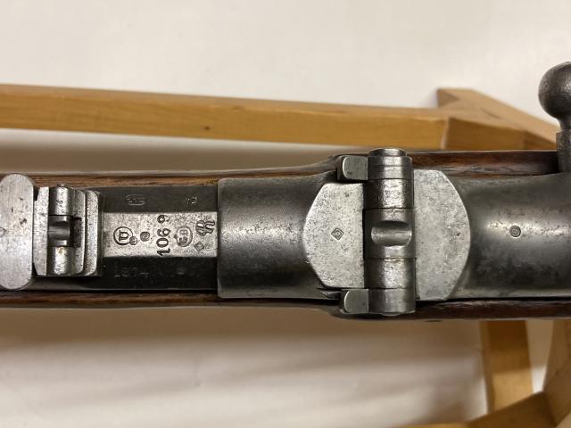Tersen 1874 karabijn, trapdoor Action, nieuwe originele loop en action. Kolf in goede staat. +10 patronen