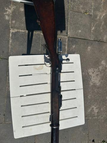 Mooie 1886 kropatschek (niet 1886/93). Goede loop, .316 trekken en .330 velden (8,0 en 8,4) Foto van een 7 schot groepje erbij