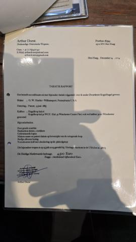 Ik heb er een vrijstellings verklaring bij van de historische wapenclub bij. Er zit een schrijven bij van het veilinghuis in USA waar hij in 2009 geveild is en heb er een taxatie rapport bij zitten.