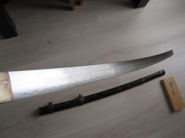 WW2 Imperial Japanese Navy officier zwaard "Kai gunto " gesigneerd , in zeldzame  uitstekende conditie. Nagasa 66,5 cm , geen onderdeel vervangen , alles origineel en behoort tot dit zwaard. Tsuba en seppas hebben gelijke nummers. Meer fotos in betere kwaliteit op aanvraag.