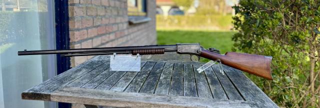 Winchester Model 1890, 2de Model in kaliber .22 SHORT. Net houtwerk wat mooi aanluit op de receiver, loop, magazijnbuis en reveiver hebben een bruin achtige patina. Loop is een 10, wapen repeteert perfect en is mechainisch dik in orde. Peepsight is een reproductie. Serienummer in de 53000 gemaakt in 1897 en valt onder de vrijstelling van Art.18RWM Vraagprijs: 1800 Euro. Voor meer info of foto’s ben ik te bereiken via de PM hier of op nummer 0631967378 (ook Whatsapp). Mvg, Ron