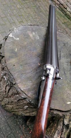 Antiek Husqvarna underlever jachtgeweer jacht geweer (( bijzonderheid 1 trekker voor beide Hamers)) Stalen lopen blinkend schoon , sluit perfect Deze wat kortere uitvoering in C 16/70 word soms ook als coachgun benoemd ,maar is eigenlijk bedoeld destijds voor de jacht in dicht beboste gebieden door meer wendbaarheid ivm met lengte .looplengte 52cm ,totale lengte 93cm Bijzondere is dat hij 1 trekker heeft voor de bediening van beide Hamers, zowel links als rechts Zeer mooie blauwing color case, algehele staat is zeer netjes Aannemelijk bod gevraagd