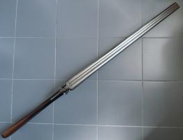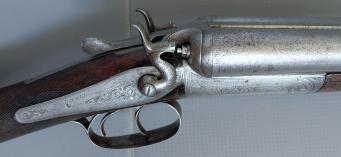 Aangeboden: Antiek Brits dubbelloops hagelgeweer in kaliber 12 met toplever sluiting.