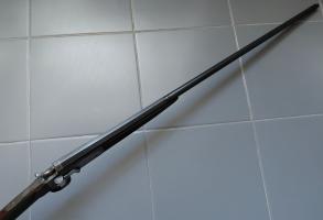 Het geweer is in nette, gebruikte staat. Hij spant en sluit netjes en inwendig is de (stalen) loop redelijk glad; met name de eerste helft van de loop is gepit. Het geweer heeft nog veel originele finish en in tegenstelling tot de meeste enkelloops .410 hagelgeweren is het geen "plooigeweer" maar eentje die in drie delen uiteen kan worden genomen zoals de meeste andere hagelgeweren. Het geweer is voorzien van Britse zwartkruit proefbankstempels, een maker staat er helaas niet op vermeld. Een Brits (enkelloops) hagelgeweer in kaliber .410 zie je niet zo vaak als een Belgisch exemplaar...