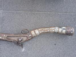 Turks Arabisch vuursteen geweer met koper en ivoor? Inleg Lengte 130 cm