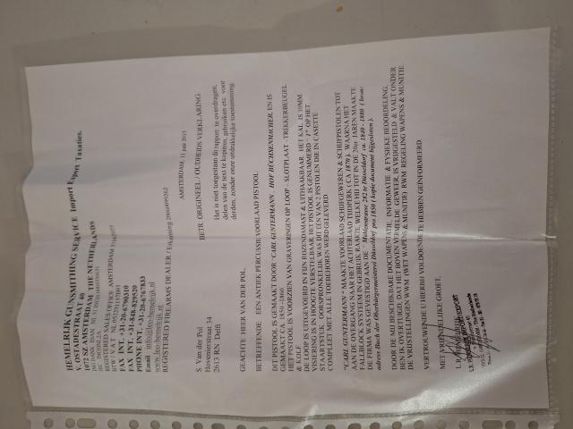 De kolf heeft een reparatie, maar is mooi en degelijk uitgevoerd, waarschijnlijk door L. Hemelrijk.