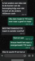 Mijn maat zei toen leverkosten 110 euro wil ik overmaken restant contant bij levering.