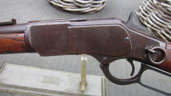 Betreft een nette Winchester 1873 saddle ring karabijn met nog veel oude patina,loop ook sporen oude blauwing.Bouwjaar 1885 Geweer heeft een zeer nette loop met goede trekken en velden.Aktie is goed zeer geschikt voor de sport schutter.Let op de karabijnen worden zeldzamer! 2350euro VASTE prijs |