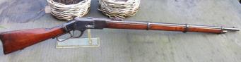 Betreft een mooie orginele Winchester 1873 musket cal 44 /40 met nog zeer mooie patina ,mooie kolf en zeer mooie loop met mooie trekken en velden