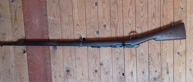 1874 m80 gras in 11mm gras. Goede staat loop en uiteraad functioneel. Houtwerk blijkt ooit gerepareert te zijn.