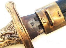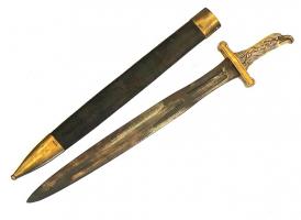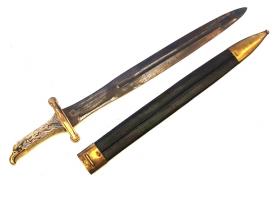 Antiek frans artillerie zwaard model 1771 eagele head. Verkeert in zeer goede staat. Gemerkt onderkant eagle head en genummerd op schede en zwaard. Ook het bataljon merk staat op het lemmet. Zie fotos. Leren schede is ook nog in zeer goede staat zonder breuken.