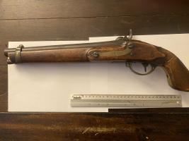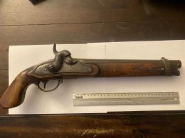 Een antieke Prussische Neisse arsenal model 1809 percurssie model 1809 conversie model vervaardig als vuursteen en waarschinlijk omgebouwd en ingkort voor gebruik in Amerikaanse burgeroorlog
