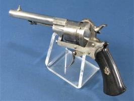 Zeer degelijk Frans 7 mm 6 schots penvuurrevolver in uitstekende staat. Gemerkt op de loop Fabrique St Etienneen voorzien van een Frans St Etienne keurmerk op cilinder. Op loop gemerkt met Movement Acier. Perfect en opvallend strak werkend werkend mechanisme in zowel sa als da. Ebbenhouten greepjes.