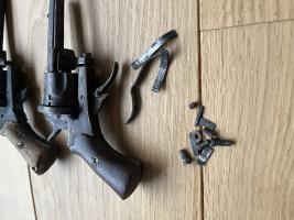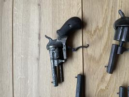 Een set van vier opknap revolvers, Een deel is opnieuw geblauwd, Sommige missende onderdelen, Vuurmechanisme werkt niet volledig bij alle