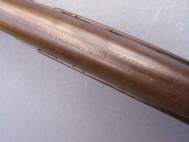Winchester 1873 rifle in kaliber 44/40 in zeer goede originele staat. 24 inch ronde loop met duidelijk loopadres. Nette loop met zichtbare trekken en velden. Goede werkend mechanisme. Notenhouten kolf en voorhout zonder barsten of scheuren.