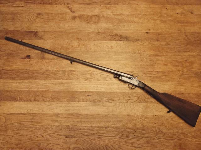 Aangeboden: origineel Frans enkelloops knikloopgeweer in kaliber 16, met duidelijke St Étienne stempel. Dit type staat bekend als een klassiek boeren- of stropersgeweer: eenvoudig, functioneel en gemaakt voor jarenlang gebruik.