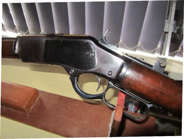 Winchester in kaliber 38/40 met diopter en zijn antieke poetsstok.