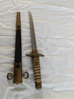 Imperial Japanese Navy officier dirk " Naval Kaigun Tanken" M.1883 in uitstekende minty conditie Meiji of Showa periode met of zonder WW2 Japanese Navy officier sword belt. Totale lengte in koshirae 40,5 cm, lengte nagasa 21cm, motohaba 1,7cm, motogasane 0,5 cm. |