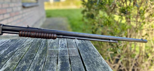 Winchester Model 1890, 2de Model in kaliber .22 SHORT. Net houtwerk wat mooi aanluit op de receiver, loop, magazijnbuis en reveiver hebben een bruin achtige patina. Loop is een 10, wapen repeteert perfect en is mechainisch dik in orde. Peepsight is een reproductie. Serienummer in de 53000 gemaakt in 1897 en valt onder de vrijstelling van Art.18RWM Vraagprijs: 1800 Euro. Voor meer info of foto’s ben ik te bereiken via de PM hier of op nummer 0631967378 (ook Whatsapp). Mvg, Ron