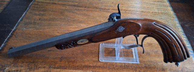 Luiks voorlaadpistool, cal .44 zeer goede trekken en velden, damast loop, korrel en keep aangepst voor 25 meter kuchenreuter O.