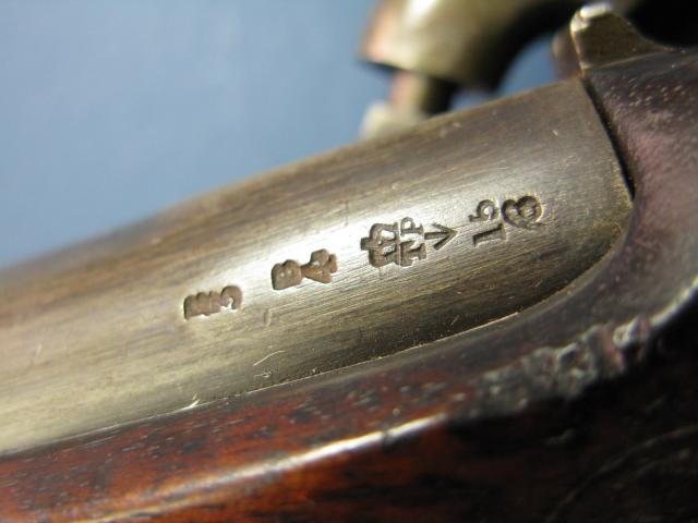 Het pistool heeft een ronde gladde loop in kaliber .65 met mooie patine. Het slot is duidelijk en scherp gemarkeerd met een KROON – pijl – EIG en voor de haan met Birmingham 1871 en een inspecteurstempel van 7/B en functioneert perfect in alle posities met een zeer scherpe actie. De achterkant van de loop is gemerkt met de gebruikelijke rij Britse militaire keurings- en controlemerken. De draaibare laadstok draagt ​​ook het controlemerk B/3 op de schacht. Messing beslag en metalen riemoog met stempel. Notenhouten kolf in uitstekende staat gemerkt met het stempel van de East Indian Government Storekeepers en de naam van de makers van het pistool. Lengte 36 cm