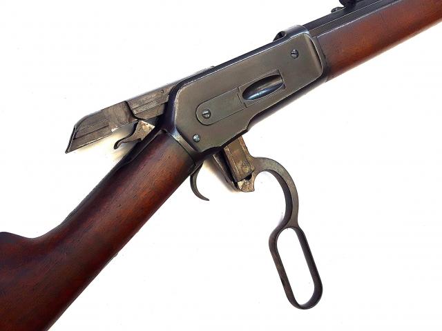 Antieke winchester 1886 in cal 45-90. Mooie is dat met een 45-90 ook de 45-70 patroon kan verschoten worden. Geweer is in uitmuntende staat. geheel in het blauw. Zeer goede en strakke mechaniek. Loop heeft zeer diepe trekken en velden die spiegelend zijn, een 10 op de schaal van 10. Bouwjaar 1891. Zeer strakke Winchester 1886 voor de serieuze verzamelaar of zwartkruit schutter. Hogere prijsklasse.