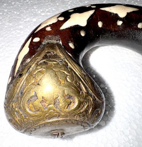 Authentiek Afghaans vuursteenpistool Jezail uit de regio Kabul/ Kandahar, uit het begin 19 eeuw. Het wapen heeft een karakteristieke sterk geboden kolf, rijk ingelegd met been, een fraaie messing een kap en een lange loop met koperen sierringen - typisch voor Afghaans vakmanschap uit die periode.