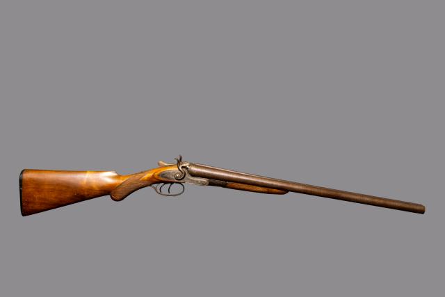 C.G. Bonehill No.18 toplever side by side shotgun. Gefabriceerd circa 1880, kaiber 12 Gauge hammer shotgun met gebruinde “laminated” stalen lopen van 22 inch (55 ½ cm). Beide boringen zijn in fine condition. Mooie gravures op het frame and lock-plates, forend en kolf zijn in excellent condition. Linker hamer is origineel, rechter hamer is ooit in de tijd vervangen.